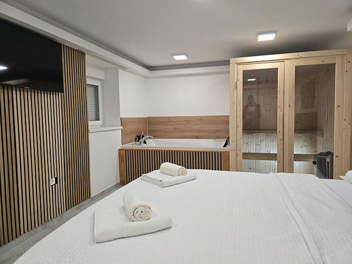 Soba Deluxe 2 savršen je izbor za one koji traže luksuzan odmor u modernom okruženju s privatnim wellness sadržajem. Idealna za romantične boravke, opuštanje ili bijeg od svakodnevnog života.