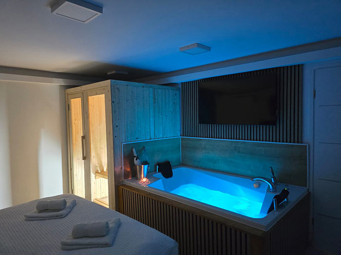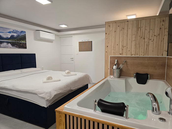 Jacuzzi u sobi omogućuje vam luksuzan doživljaj opuštanja, idealan za ublažavanje stresa i uživanje u tišini.